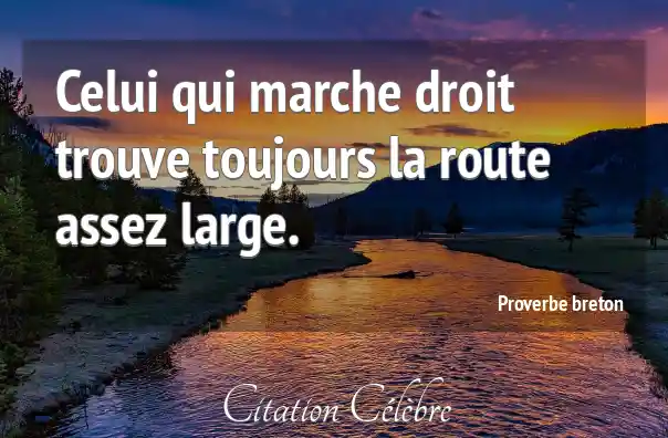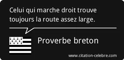 Proverbe  Breton Droit : Celui qui marche droit trouve toujours la route assez large....