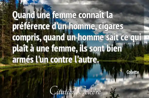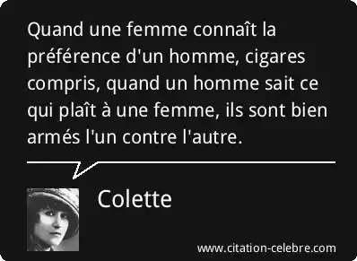 Quand une femme connaît la préférence d'un homme, cigares compris, quand un homme sait ce qui plaît à une femme, ils sont bien armés l'un contre l'autre.