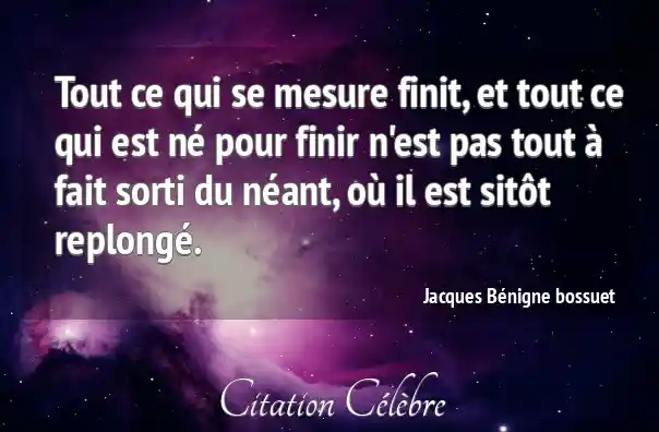 Tout ce qui se mesure finit, et tout ce qui est né pour finir n'est pas tout à fait sorti du néant, où il est sitôt replongé.