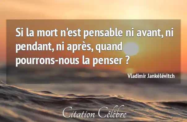 Si la mort n'est pensable ni avant, ni pendant, ni après, quand pourrons-nous la penser ?