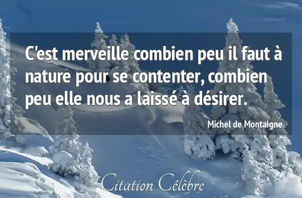 C'est merveille combien peu il faut à nature pour se contenter, combien peu elle nous a laissé à désirer.