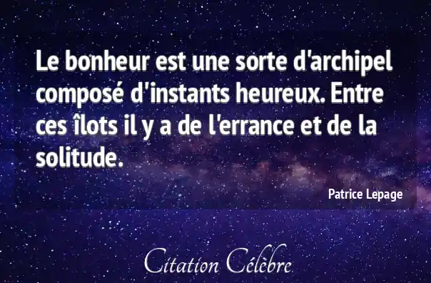 Le bonheur est une sorte d'archipel composé d'instants heureux. Entre ces îlots il y a de l'errance et de la solitude.