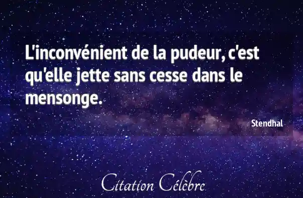 L'inconvénient de la pudeur, c'est qu'elle jette sans cesse dans le mensonge.