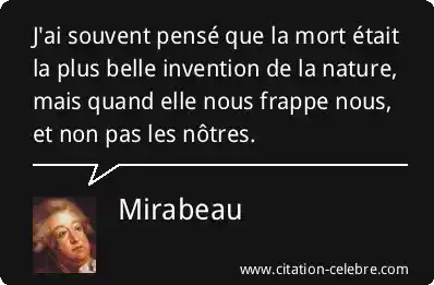 J'ai souvent pensé que la mort était la plus belle invention de la nature, mais quand elle nous frappe nous, et non pas les nôtres.
