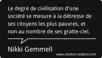 Le degré de civilisation d'une société se mesure à la détresse de ses citoyens les plus pauvres, et non au nombre de ses gratte-ciel.