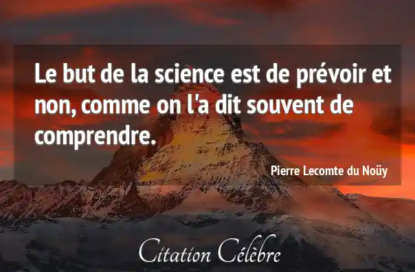 Le but de la science est de prévoir et non, comme on l'a dit souvent de comprendre.
