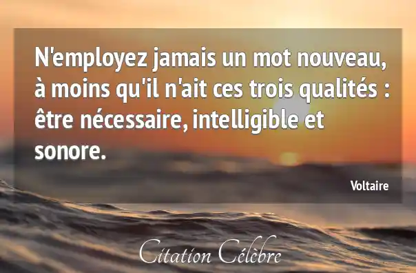 N'employez jamais un mot nouveau, à moins qu'il n'ait ces trois qualités : être nécessaire, intelligible et sonore.