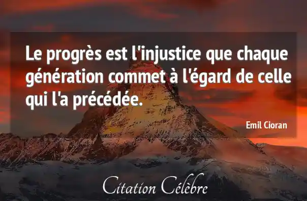 Le progrès est l'injustice que chaque génération commet à l'égard de celle qui l'a précédée.