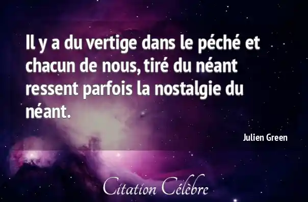 Il y a du vertige dans le péché et chacun de nous, tiré du néant ressent parfois la nostalgie du néant.