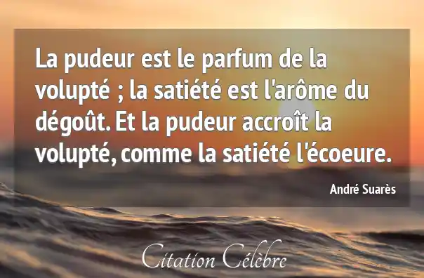 La pudeur est le parfum de la volupté ; la satiété est l'arôme du dégoût. Et la pudeur accroît la volupté, comme la satiété l'écoeure.