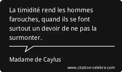 La timidité rend les hommes farouches, quand ils se font surtout un devoir de ne pas la surmonter.