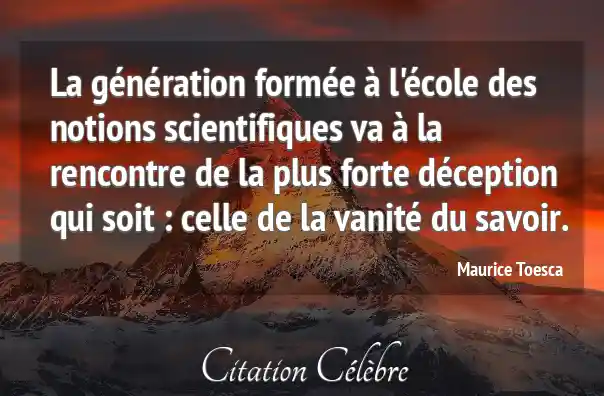 La génération formée à l'école des notions scientifiques va à la rencontre de la plus forte déception qui soit : celle de la vanité du savoir.