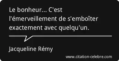 Le bonheur... C'est l'émerveillement de s'emboîter exactement avec quelqu'un.
