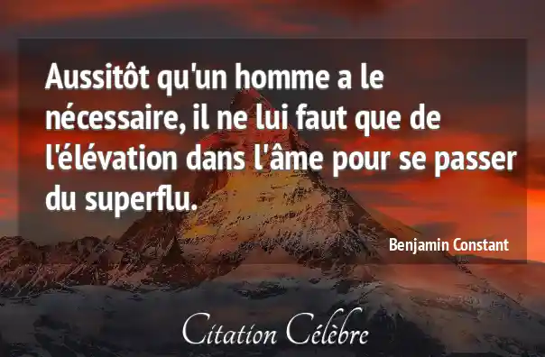Aussitôt qu'un homme a le nécessaire, il ne lui faut que de l'élévation dans l'âme pour se passer du superflu.