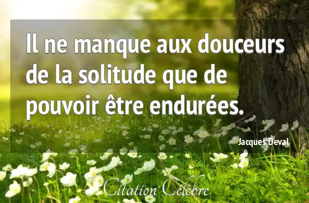 Il ne manque aux douceurs de la solitude que de pouvoir être endurées.