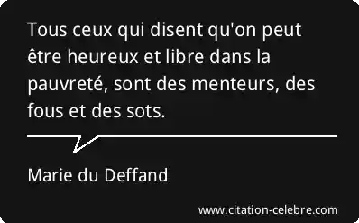 Tous ceux qui disent qu'on peut être heureux et libre dans la pauvreté, sont des menteurs, des fous et des sots.