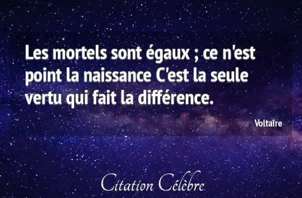 Les mortels sont égaux ; ce n'est point la naissance C'est la seule vertu qui fait la différence.