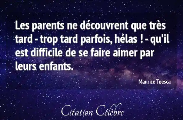 Les parents ne découvrent que très tard - trop tard parfois, hélas ! - qu'il est difficile de se faire aimer par leurs enfants.