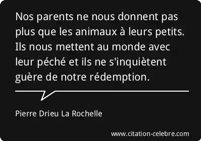 Nos parents ne nous donnent pas plus que les animaux à leurs petits. Ils nous mettent au monde avec leur péché et ils ne s'inquiètent guère de notre rédemption.
