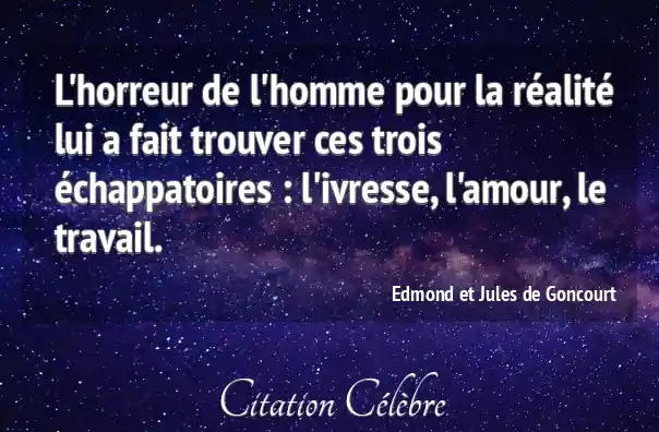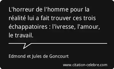 L'horreur de l'homme pour la réalité lui a fait trouver ces trois échappatoires : l'ivresse, l'amour, le travail.