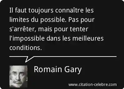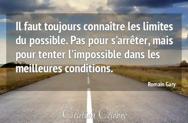 Il faut toujours connaître les limites du possible. Pas pour s'arrêter, mais pour tenter l'impossible dans les meilleures conditions.