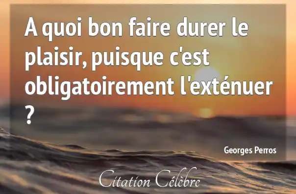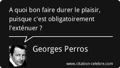 A quoi bon faire durer le plaisir, puisque c'est obligatoirement l'exténuer ?