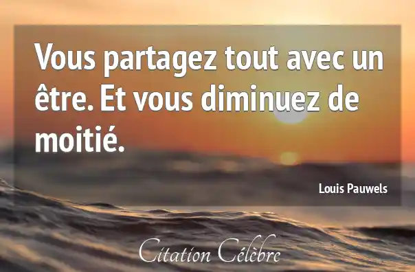 Vous partagez tout avec un être. Et vous diminuez de moitié.