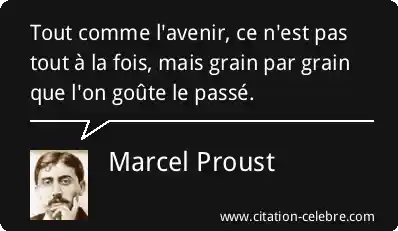 Tout comme l'avenir, ce n'est pas tout à la fois, mais grain par grain que l'on goûte le passé.