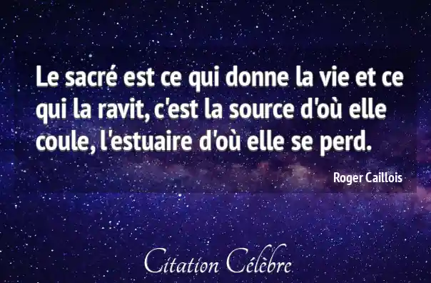 Le sacré est ce qui donne la vie et ce qui la ravit, c'est la source d'où elle coule, l'estuaire d'où elle se perd.
