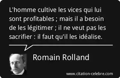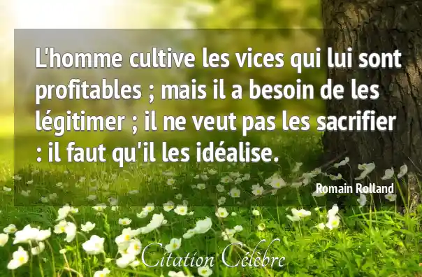 L'homme cultive les vices qui lui sont profitables ; mais il a besoin de les légitimer ; il ne veut pas les sacrifier : il faut qu'il les idéalise.