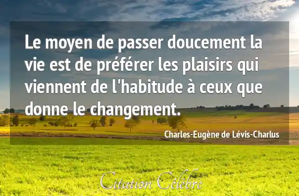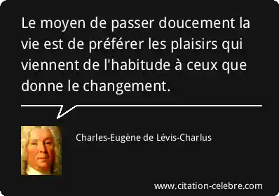 Le moyen de passer doucement la vie est de préférer les plaisirs qui viennent de l'habitude à ceux que donne le changement.