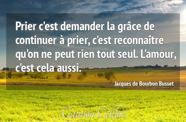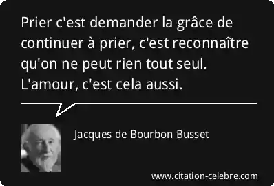Prier c'est demander la grâce de continuer à prier, c'est reconnaître qu'on ne peut rien tout seul. L'amour, c'est cela aussi.