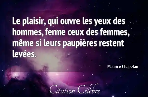 Le plaisir, qui ouvre les yeux des hommes, ferme ceux des femmes, même si leurs paupières restent levées.