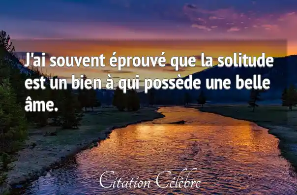 J'ai souvent éprouvé que la solitude est un bien à qui possède une belle âme.