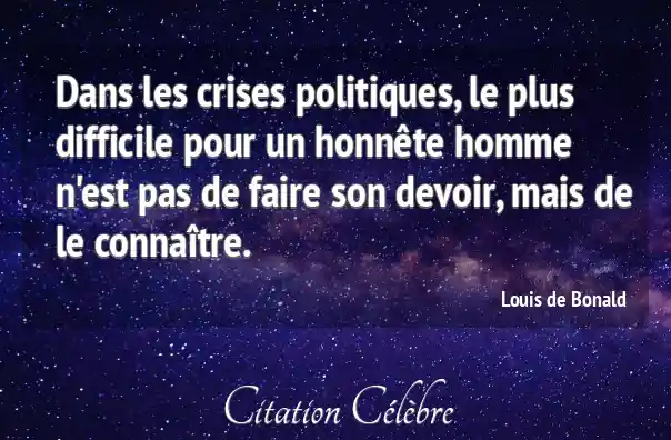 Dans les crises politiques, le plus difficile pour un honnête homme n'est pas de faire son devoir, mais de le connaître.