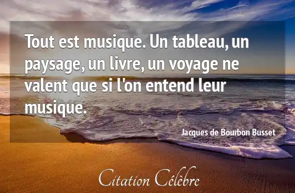 Tout est musique. Un tableau, un paysage, un livre, un voyage ne valent que si l'on entend leur musique.