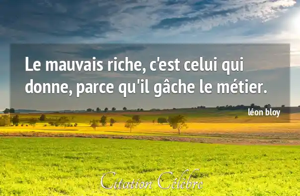 Le mauvais riche, c'est celui qui donne, parce qu'il gâche le métier.