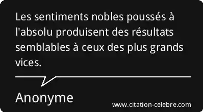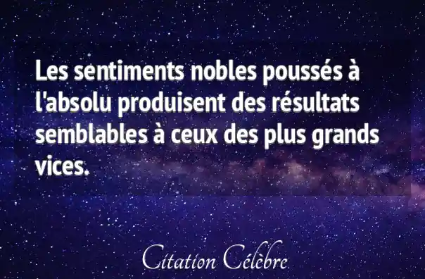 Les sentiments nobles poussés à l'absolu produisent des résultats semblables à ceux des plus grands vices.