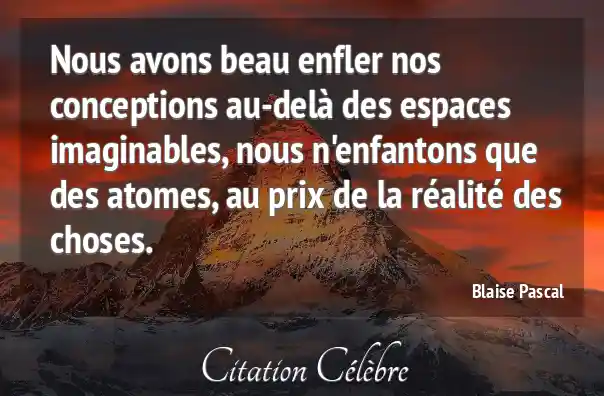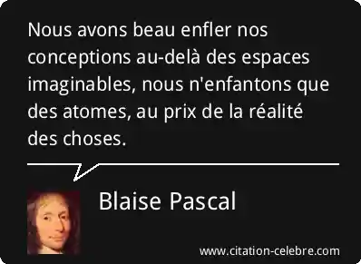 Nous avons beau enfler nos conceptions au-delà des espaces imaginables, nous n'enfantons que des atomes, au prix de la réalité des choses.