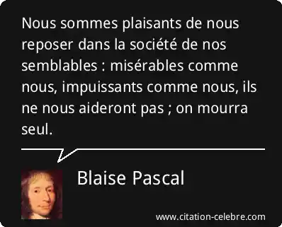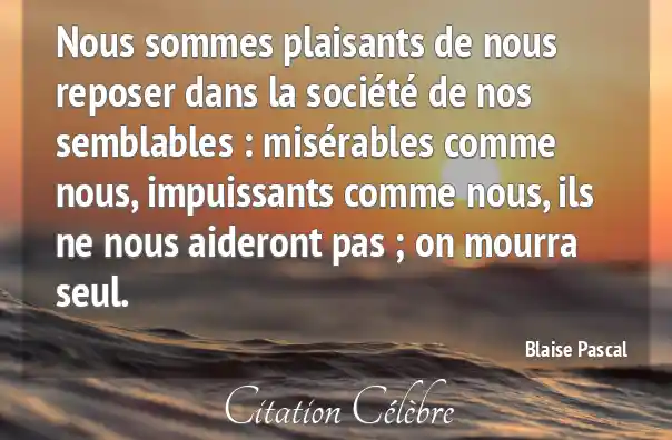 Nous sommes plaisants de nous reposer dans la société de nos semblables : misérables comme nous, impuissants comme nous, ils ne nous aideront pas ; on mourra seul.