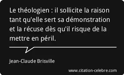 Le théologien : il sollicite la raison tant qu'elle sert sa démonstration et la récuse dès qu'il risque de la mettre en péril.