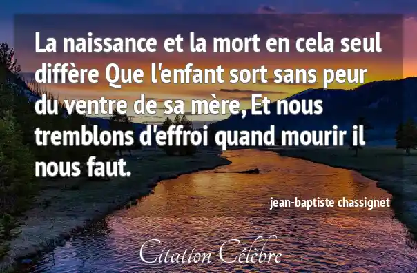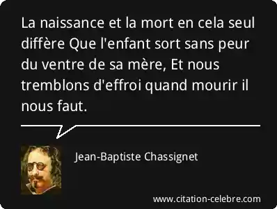 La naissance et la mort en cela seul diffère Que l'enfant sort sans peur du ventre de sa mère, Et nous tremblons d'effroi quand mourir il nous faut.