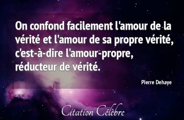 On confond facilement l'amour de la vérité et l'amour de sa propre vérité, c'est-à-dire l'amour-propre, réducteur de vérité.