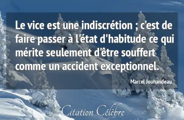 Le vice est une indiscrétion ; c'est de faire passer à l'état d'habitude ce qui mérite seulement d'être souffert comme un accident exceptionnel.
