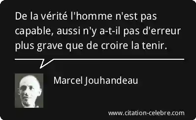 De la vérité l'homme n'est pas capable, aussi n'y a-t-il pas d'erreur plus grave que de croire la tenir.