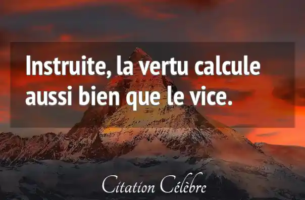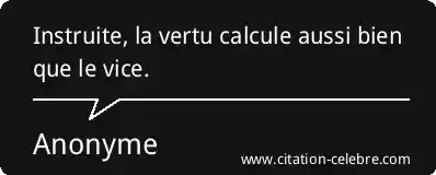 Instruite, la vertu calcule aussi bien que le vice.