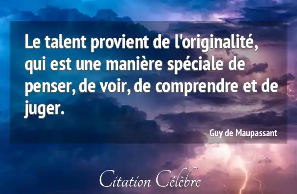 Le talent provient de l'originalité, qui est une manière spéciale de penser, de voir, de comprendre et de juger.