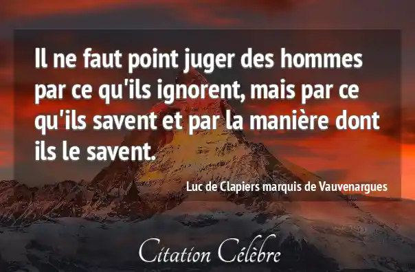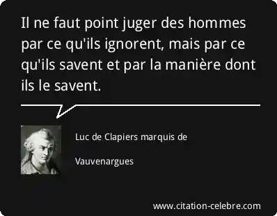 Il ne faut point juger des hommes par ce qu'ils ignorent, mais par ce qu'ils savent et par la manière dont ils le savent.