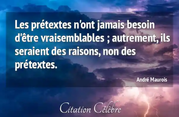 Les prétextes n'ont jamais besoin d'être vraisemblables ; autrement, ils seraient des raisons, non des prétextes.