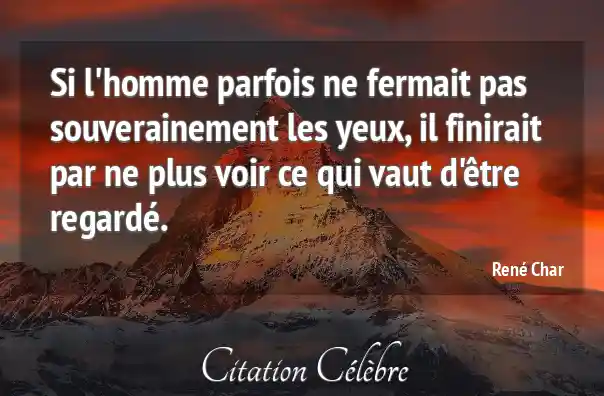 Si l'homme parfois ne fermait pas souverainement les yeux, il finirait par ne plus voir ce qui vaut d'être regardé.